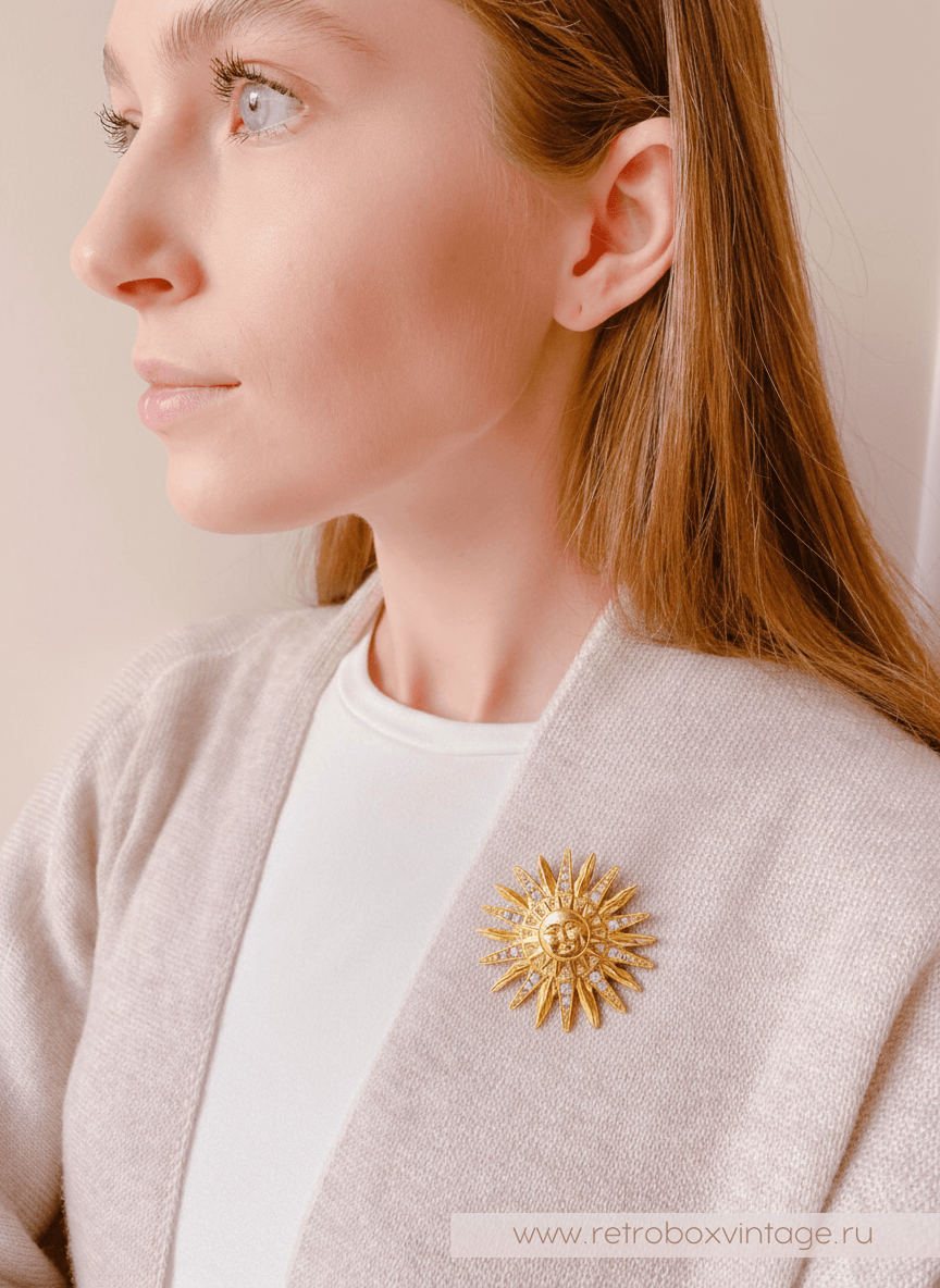 Эта брошь словно сошла с древних барельефов, хранящих память о цивилизации, поклонявшейся свету. Она рождена легендарной маркой Trifari, чьё имя для ценителей звучит как синоним безупречного вкуса. Мастера, пришедшие из домов высокой ювелирной моды, вкладывали в каждое украшение душу, превращая сплавы и кристаллы в настоящие шедевры. Сегодня эти творения по праву называют ювелирным искусством. Это редкие украшения за которыми охотятся коллекционеры по всему миру. Их передают по наследству, ими восхищаются, их хранят как сокровище.