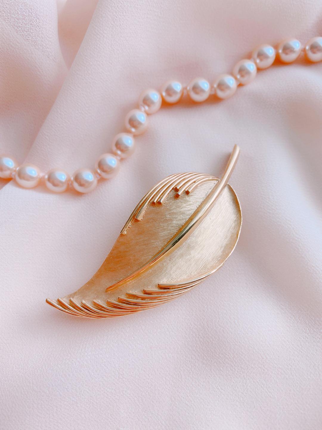 Скромная брошь в классическом исполнении, а как много может поведать! Нежный изгиб листочка, лаконичное исполнение и женственный оттенок золота обещают, что с таким украшение Вы не останетесь в тени!