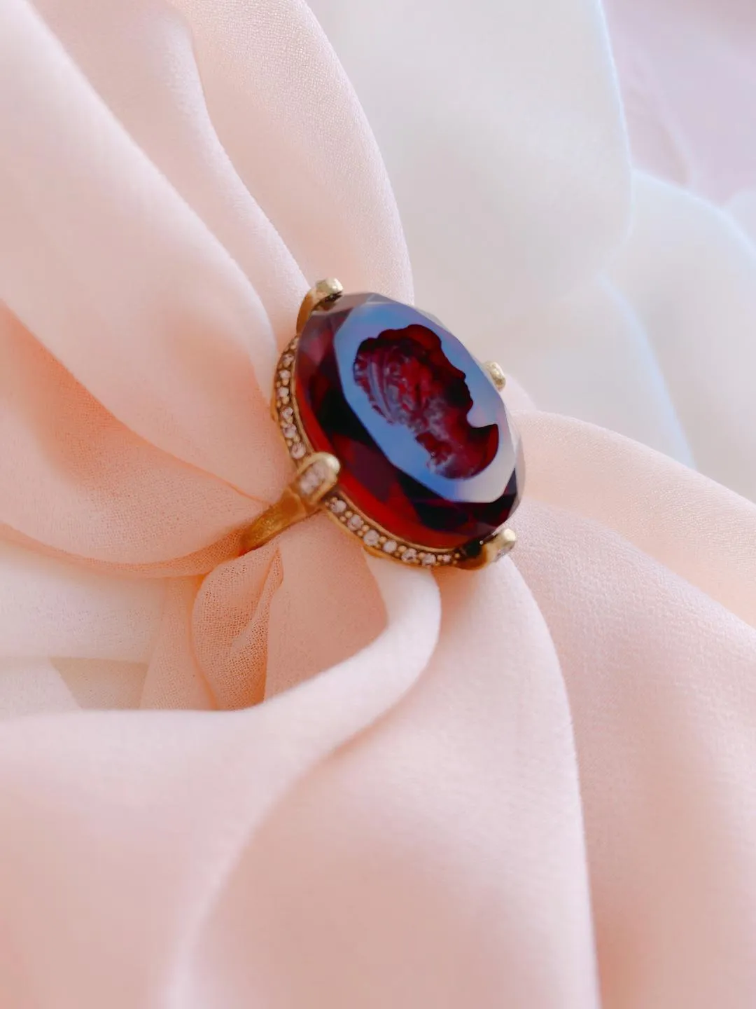 Именно профиль, по мнению древнегреческих ювелиров, позволял передать божественную красоту с математической точностью.Прошли века, но мы по-прежнему восторгаемся мастерством художников, создающих инталии и камеи. Их невероятная магия вселяет в нас уверенность в собственном совершенстве и естественной красоте.Как вы думаете, кто из богинь запечатлен в этом кольце? Быть может, это сама Афродита, дарующая счастье любить и быть любимой.