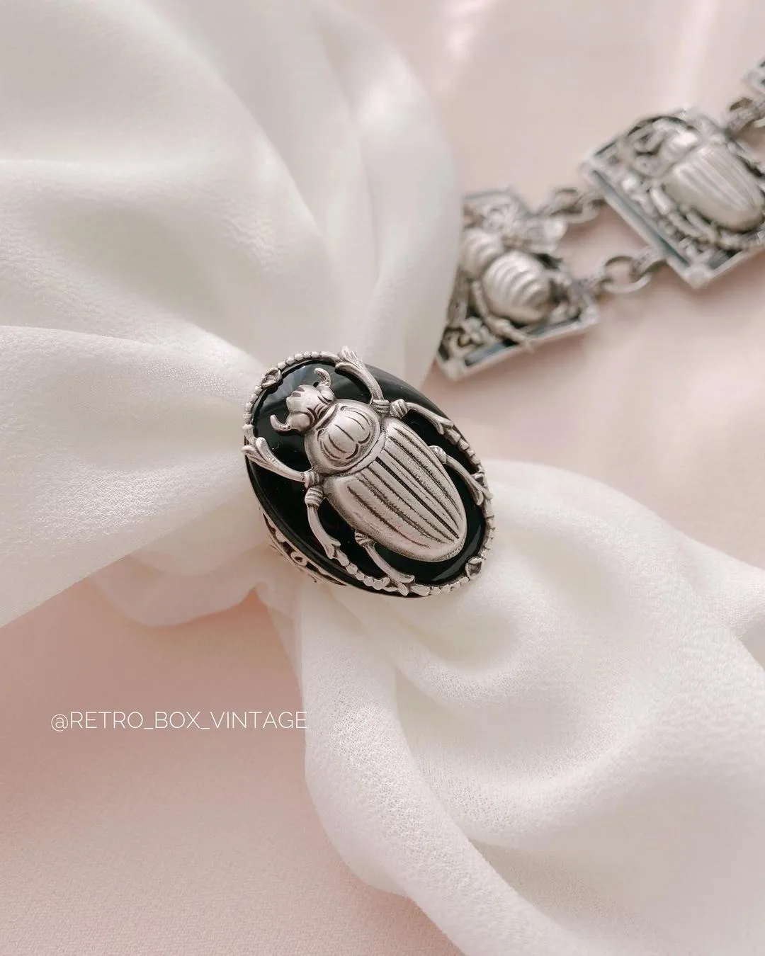 Кольцо с символичным жуком-скарабеем на «ониксе» поражает своей строгостью и красотой! Считается, что украшение в виде скарабея помогает справиться с дурным настроением и заряжает положительными эмоциями.А чтобы этот жук делился с Вами позитивной энергетикой, просто поверьте в его силу и почаще рассказывайте ему свои мечты!
