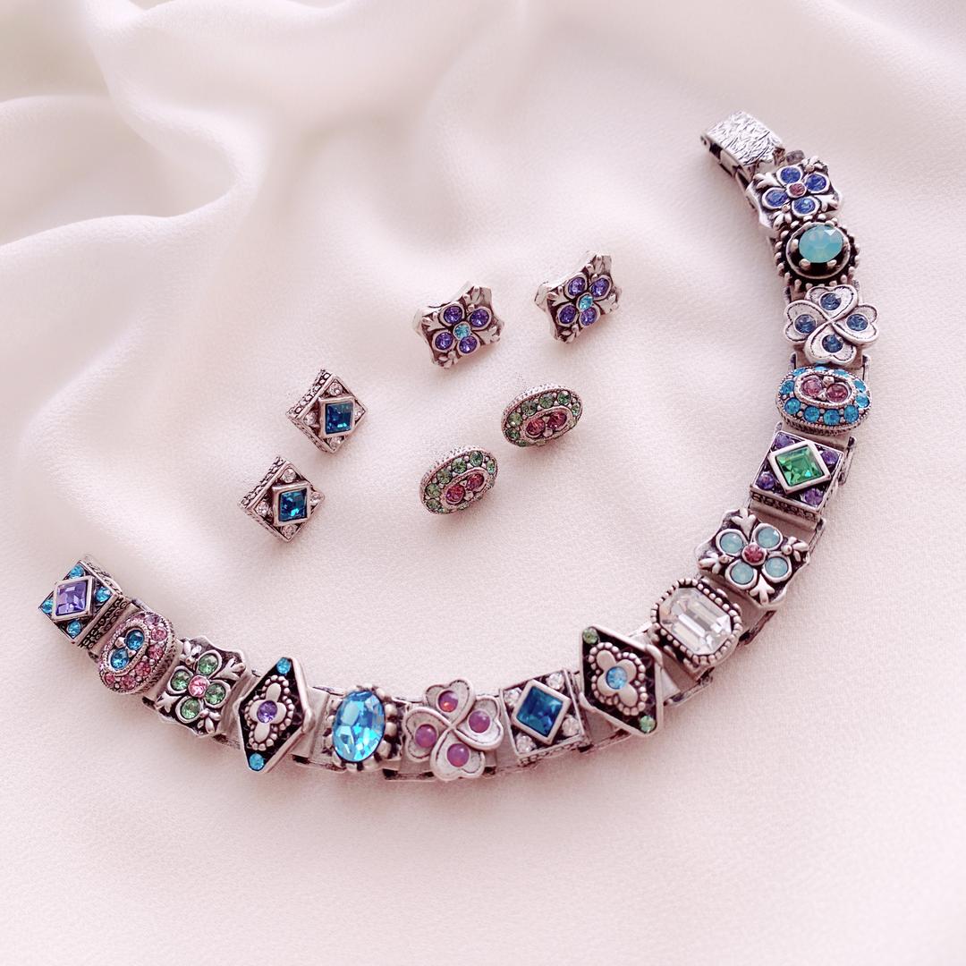 Шелли Купер сумела воплотить красоту красок природы в браслете-слайдере, воссоздав его в винтажном стиле, используя старинные техники производства.Войдя в моду в 1900-х годах, они сразу полюбились модницам и с тех пор пользуются популярностью. Шелли Купер воссоздала этот браслет, используя старинные техники производства, а также винтажные материалы.Украшение выполнено в викторианском стиле: королева Виктория обожала носить подобные браслеты с шармами. Каждый шарм в отдельности является определенным знаком, а их сочетание способно рассказать целую историю.Все элементы безупречны. Сочетание кристаллов высшего качества со вставками художественного стекла, в обрамлении серебра вызывают самые восторженные чувства.