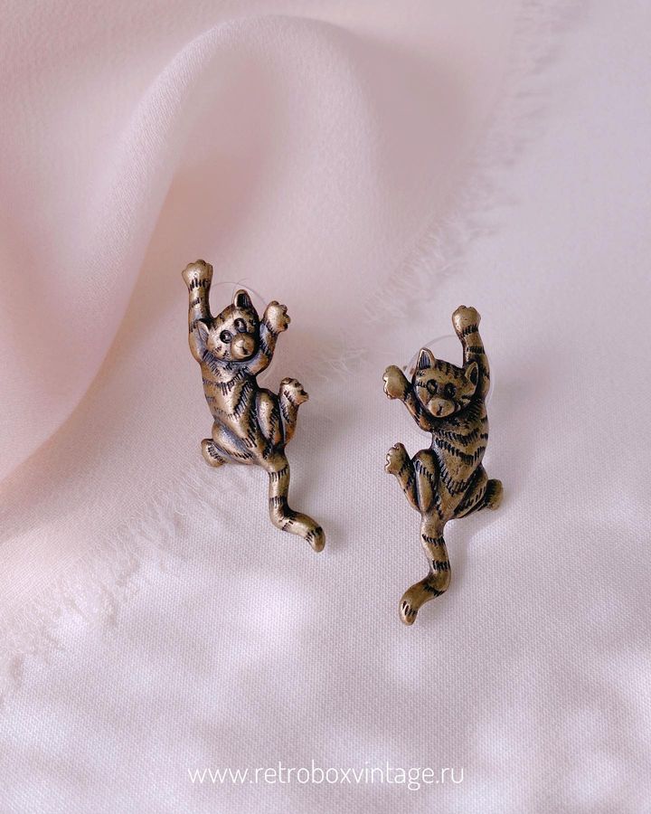 Необыкновенные в своей фантазии серьги выполнены из пьютера, или так называемого английского металла, в цвете бронзы, способной, как известно, усиливать творческие способности человека, который её носит. Образ кошки, как известно, уходит корнями в далёкое прошлое, например, в Древнем Египте эти животные имели особый сакральный статус и почитались жителями наравне с богами, поэтому эти два проказника изображены здесь не просто так – JONET JEWELRY очень тщательно подходят к выбору темы для своих украшений.