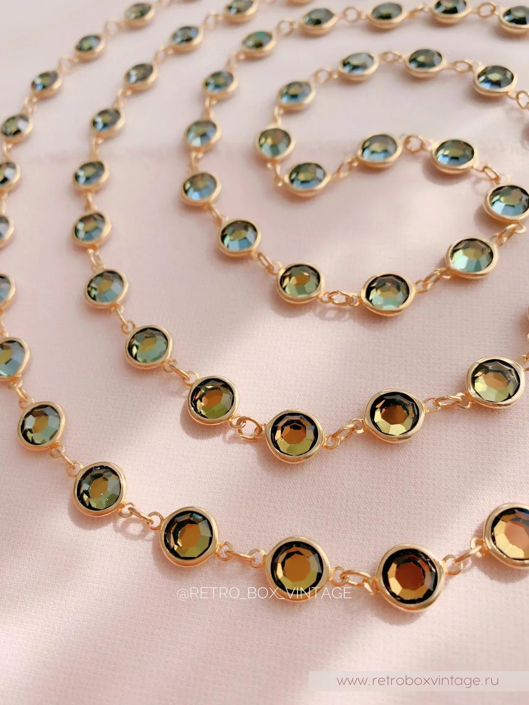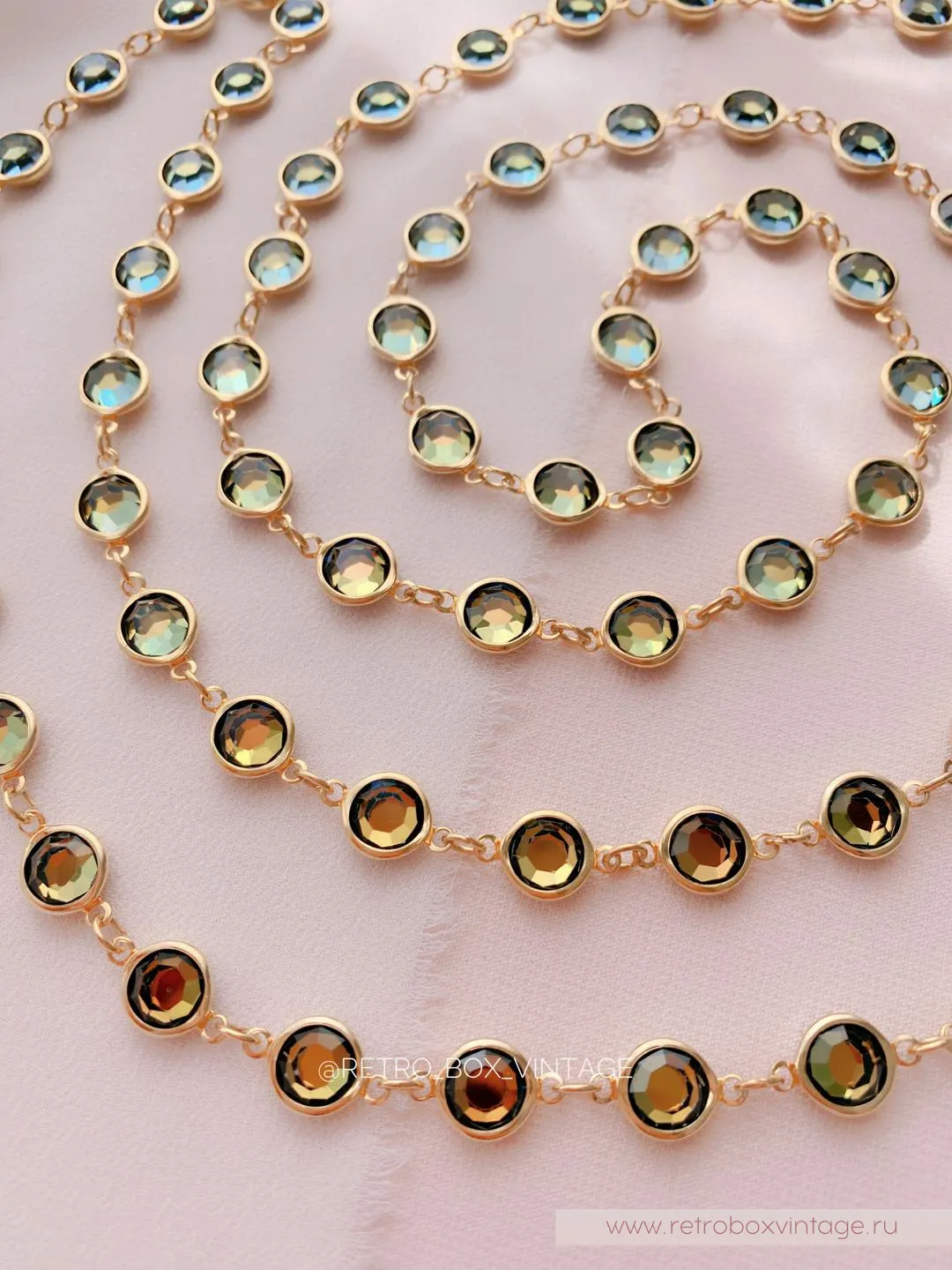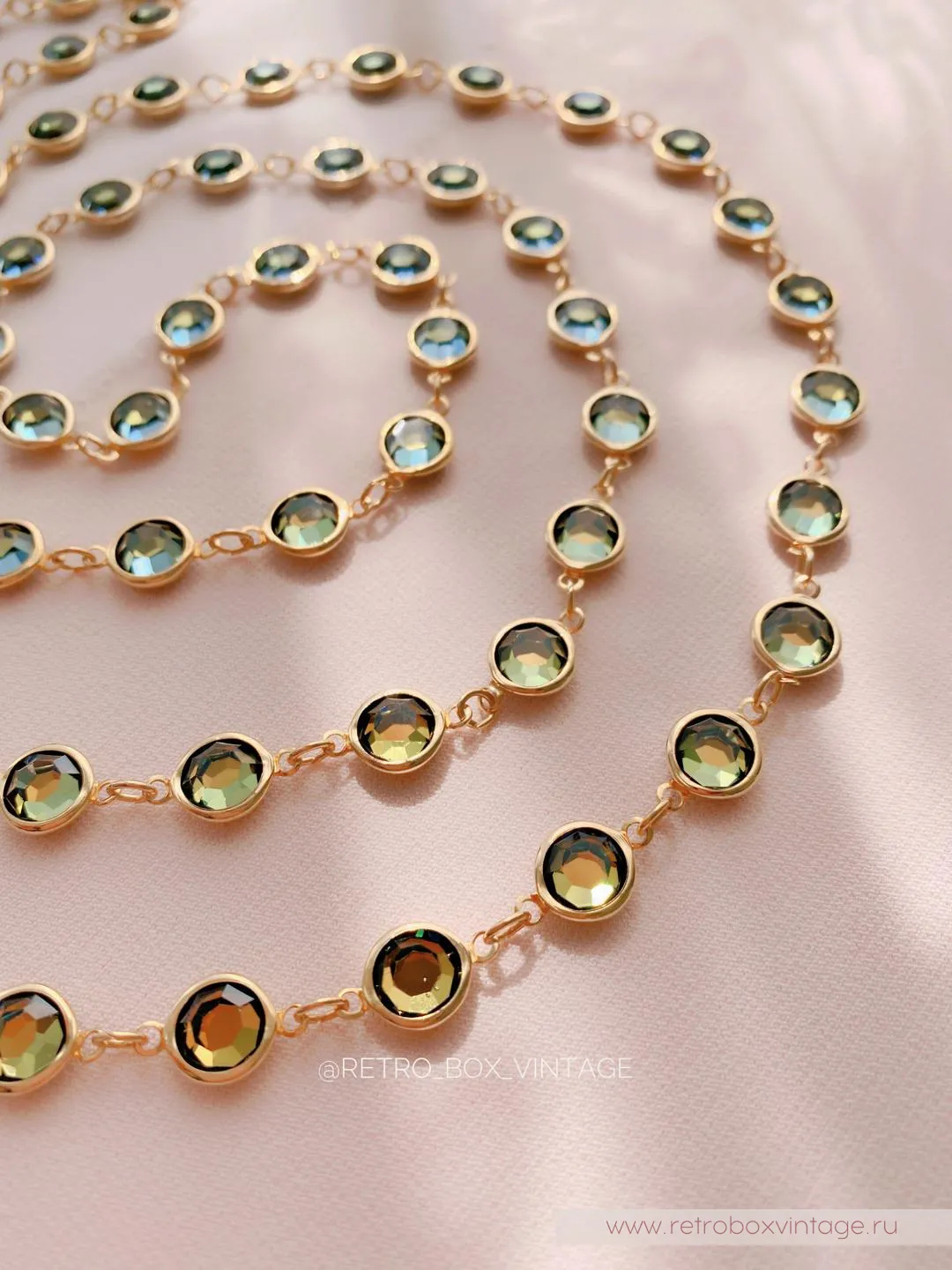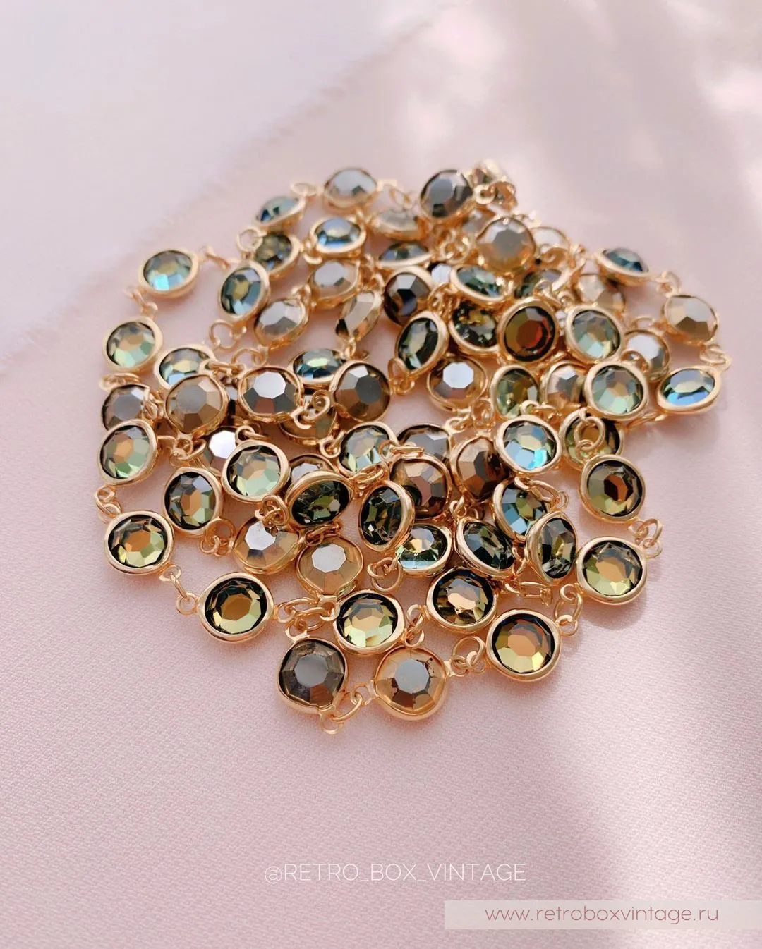 Эта нить безелей — сама суть очарования! Кристаллы неземной красоты, отражающие золотые, серые, черные и насыщенные зелёные вспышки, завораживают и интригуют. С покрытием Aurora Borealis они превращаются в настоящие сокровища, которые не оставят равнодушными. Позвольте музыке кристаллов быть частью вашего повседневного праздника, создайте свой уникальный стиль и позвольте само очарование обнять вас!