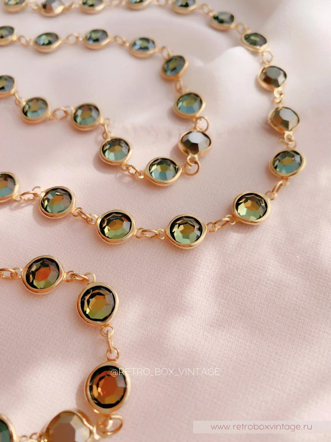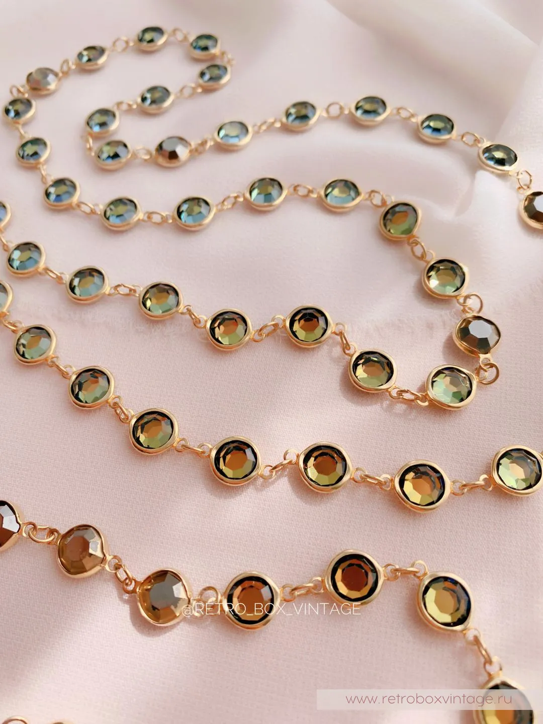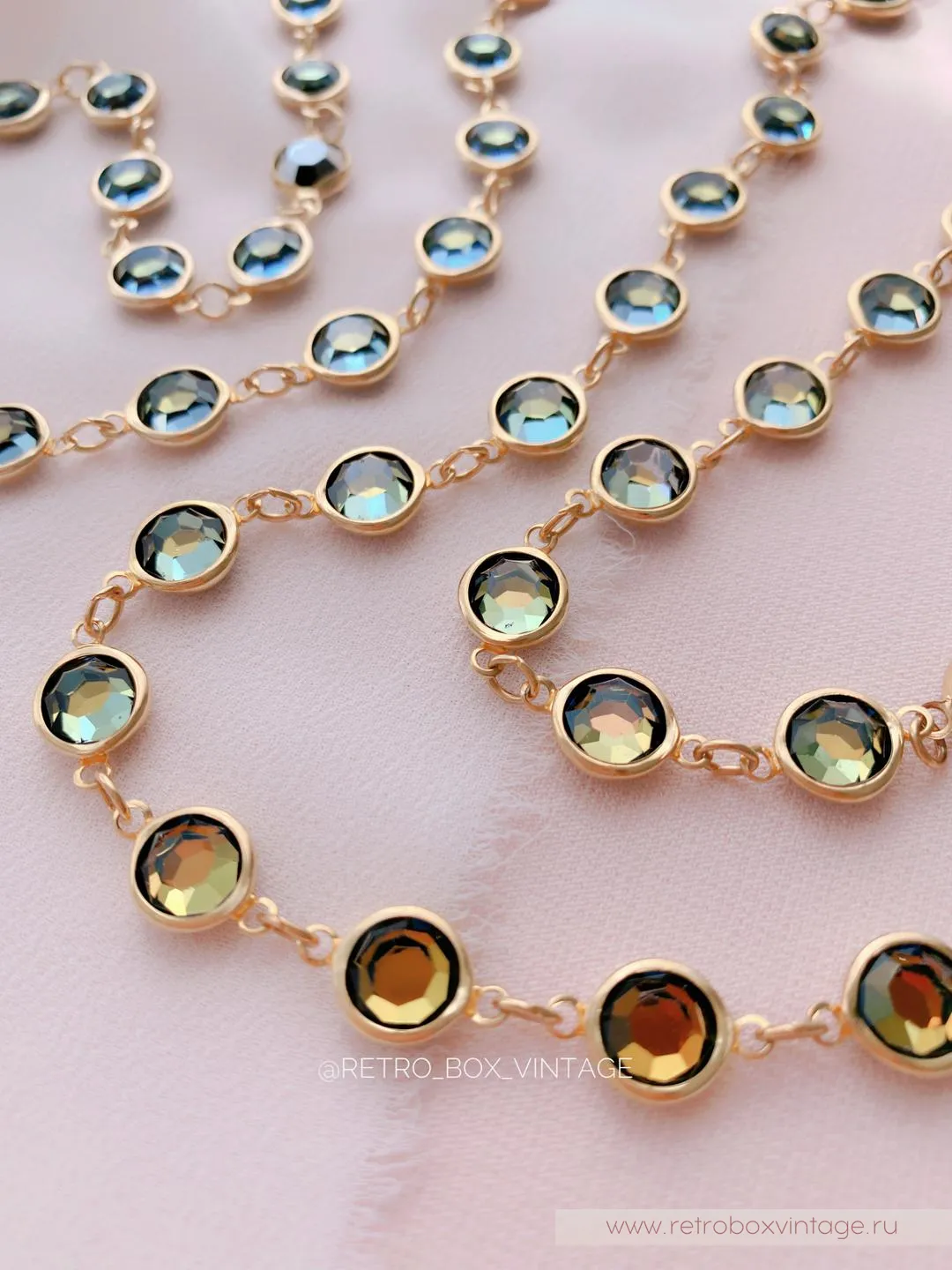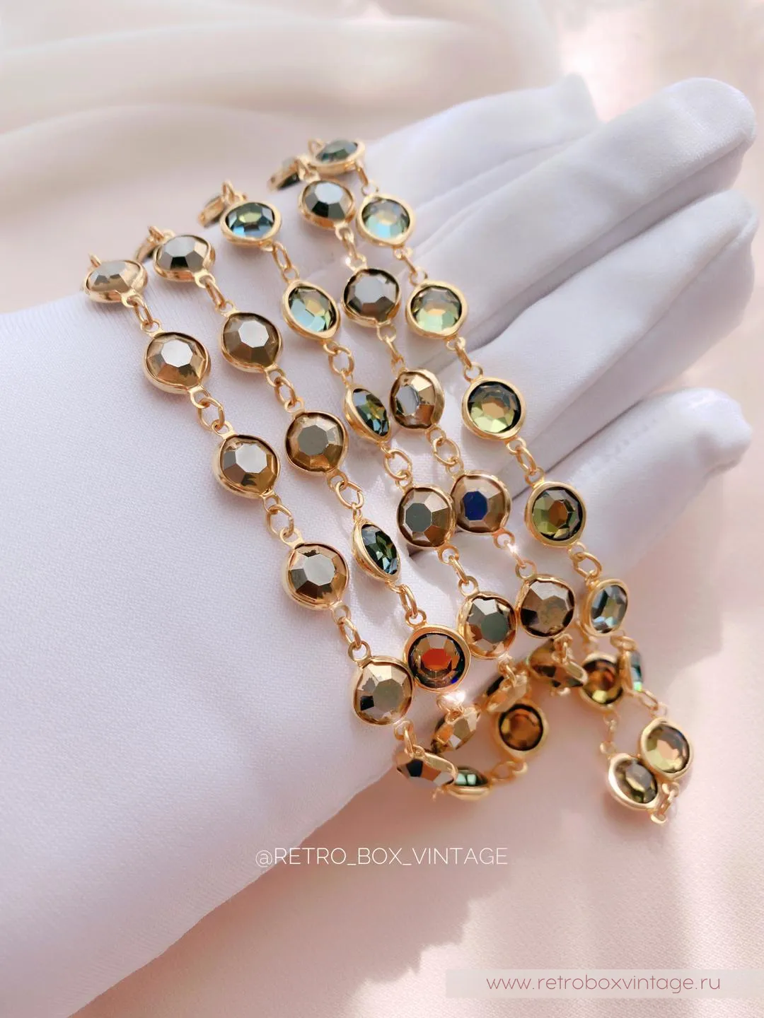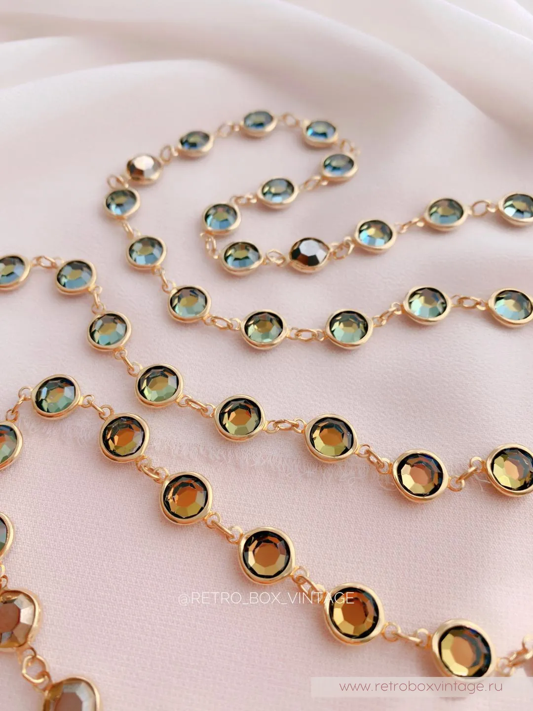 Эта нить безелей — сама суть очарования! Кристаллы неземной красоты, отражающие золотые, серые, черные и насыщенные зелёные вспышки, завораживают и интригуют. С покрытием Aurora Borealis они превращаются в настоящие сокровища, которые не оставят равнодушными. Позвольте музыке кристаллов быть частью вашего повседневного праздника, создайте свой уникальный стиль и позвольте само очарование обнять вас!