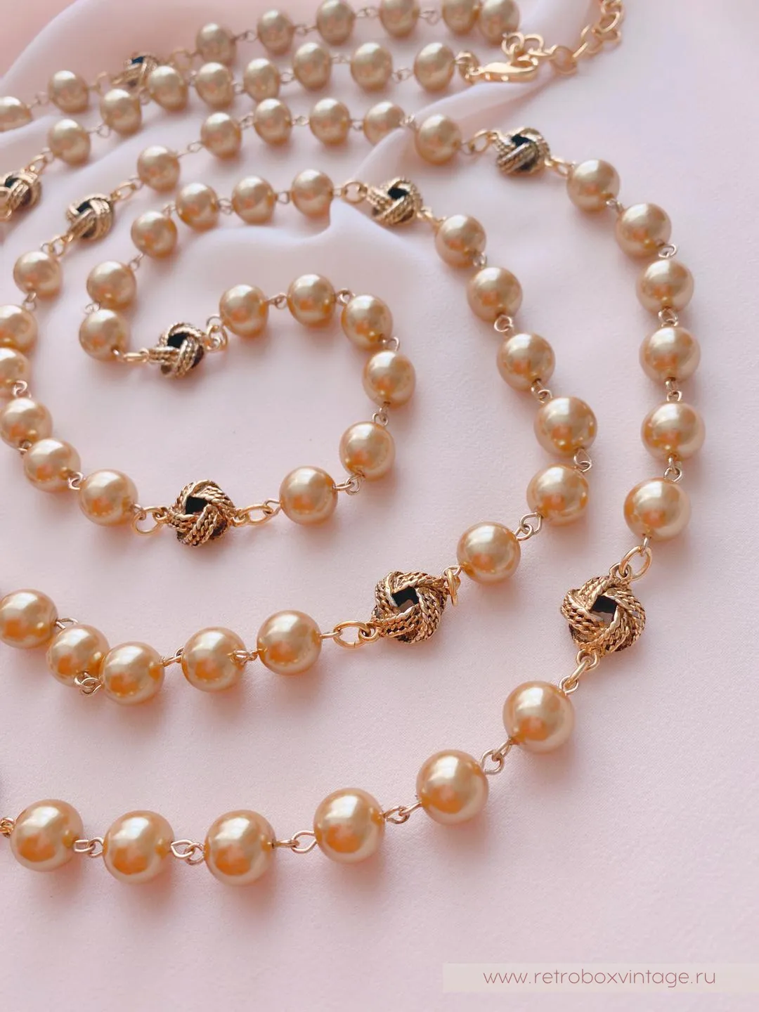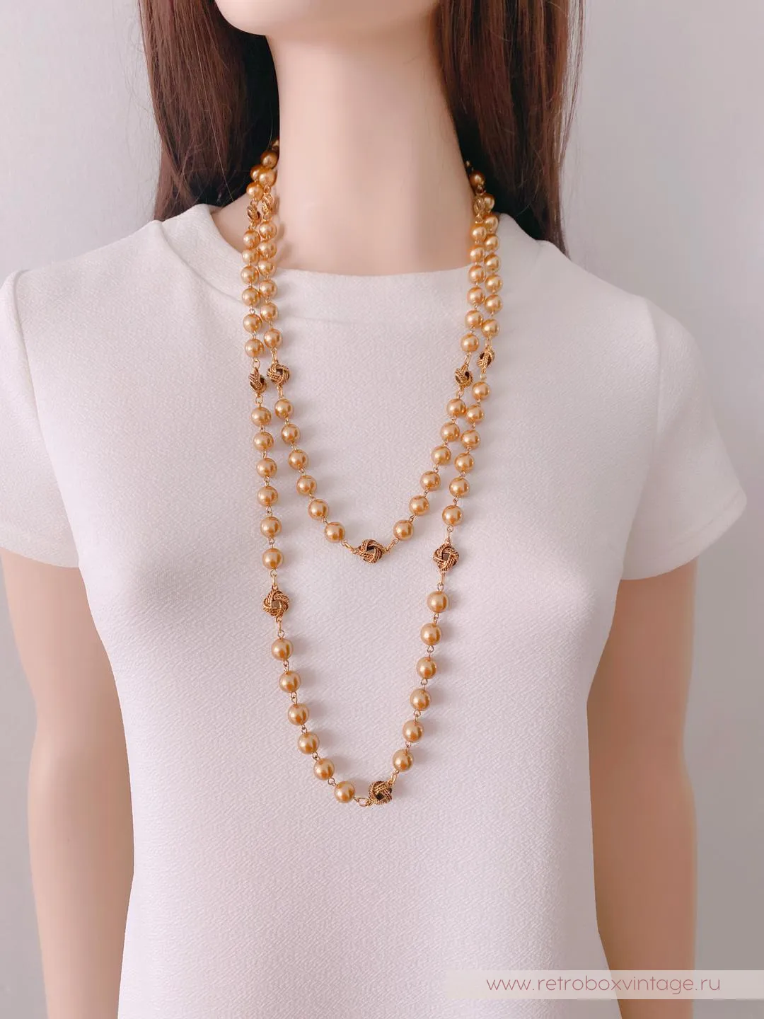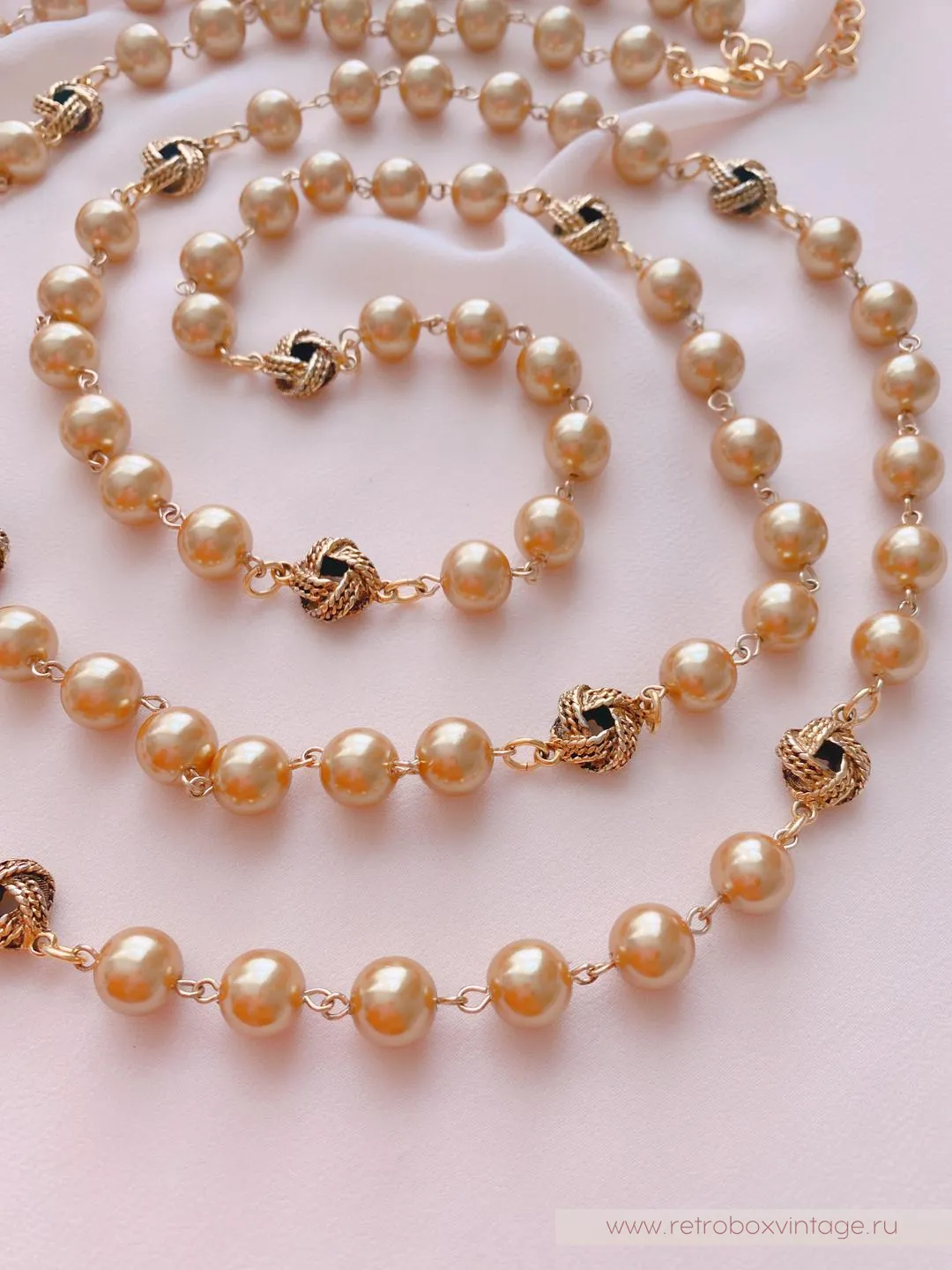 Длинная жемчужная нить украшена золотыми элементами в виде арабских узелков, которые придают изделию особую пикантность и характер. Жемчужные украшения всегда были символом женственности и утонченности, и это колье не исключение. Они подчеркивают красоту и индивидуальность каждой женщины, придавая образу шарм и элегантность. Коко Шанель обожала жемчуг и создавала великолепные украшения, которые стали культовыми. Ее любовь к жемчугу стала основой для создания неподвластных времени аксессуаров, которые олицетворяют стиль, уверенность и изысканность.