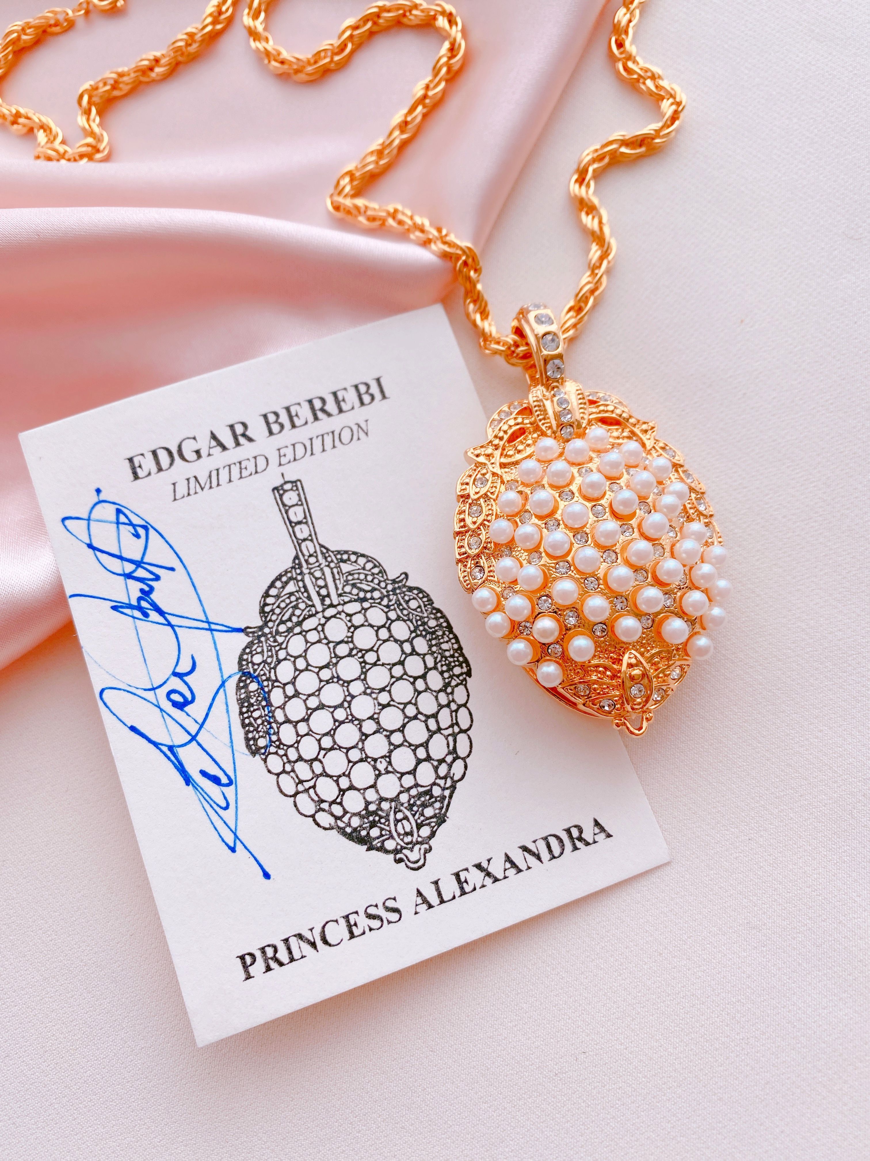 Исключительное качество и ограниченность тиража также делают украшения Береби востребованными и желанными. Например, этот уникальный кулон-локет был выпущен первым ограниченным тиражом всего в 800 изделий, а количество таких украшений по всему миру насчитывадось всего в 2400 экземпляров, что делает это украшение крайне редким и невероятно ценным среди любителей винтажных изделий. Ослепительно сияющие кристаллы, множество великолепных жемчужинок и высококачественный сплав выгодно выделяют это украшение на фоне схожих изделий. И как любой винтажный предмет коллекционирования, вызывающий с каждым годом всё больший интерес, этот замечательный локет от компании Edgar Berebi постоянно растёт в цене. Поэтому помимо невероятной красоты такое редкое дизайнерское украшение станет прекрасным инвестиционным проектом.